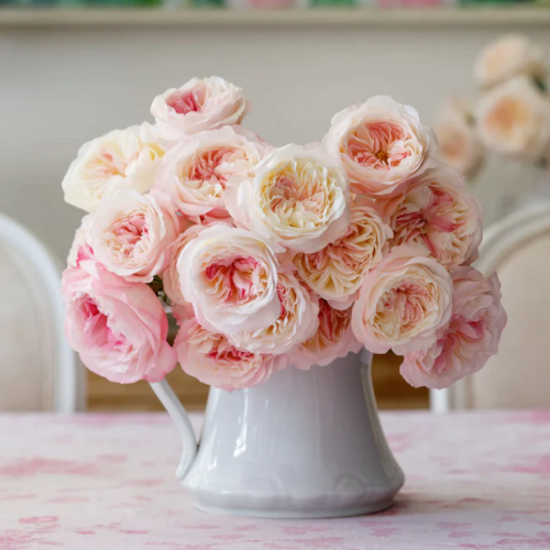 send a gift of premium flowers filled with greens, garden roses and in season selections - pink, whites and peaches